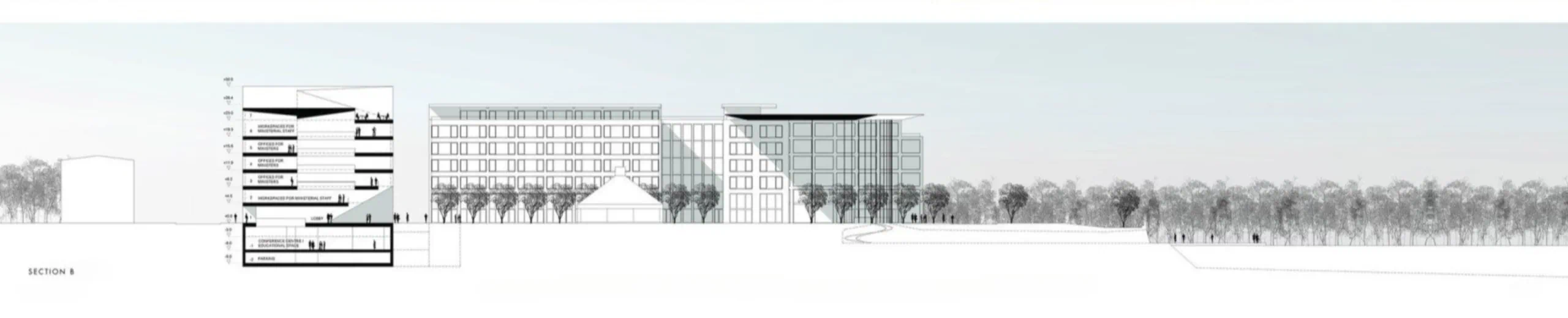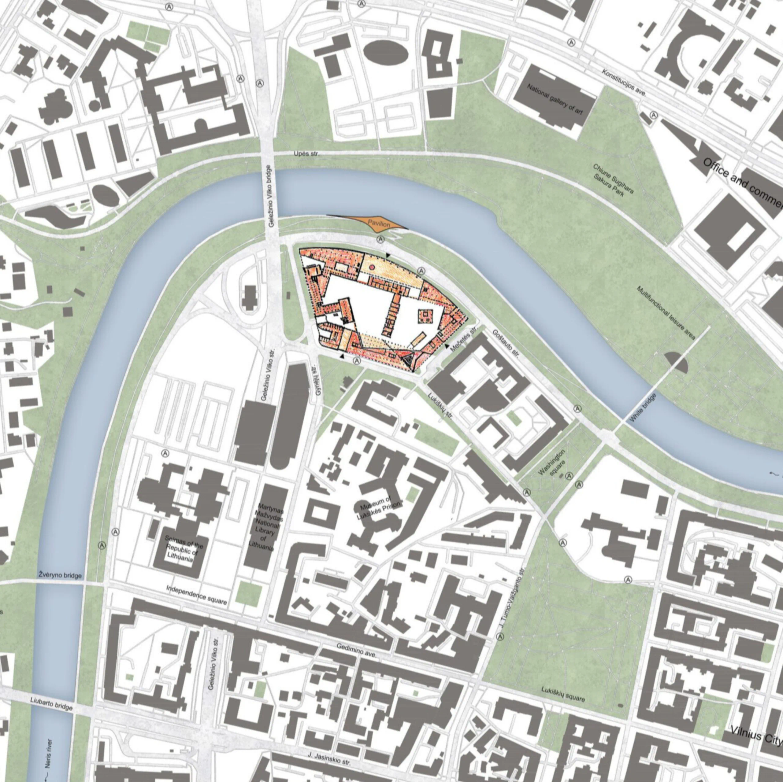 Šiuo pasiūlymu numatoma Vilniaus centre, pagrindinėje kelių transporto rūšių susikirtimo vietoje, įrengti bendrą šešių ministerijų miestelį. Projekte daugiausia dėmesio skiriama tęstinumui, lankstumui ir identitetui, sukuriant tvarią, ilgalaikę pastatų strategiją, kuri sklandžiai įsilieja į miesto kraštovaizdį. Naujasis rajonas sujungs Vilniaus senamiestį ir upės krantinę, tapdamas jungtimi tarp jų.